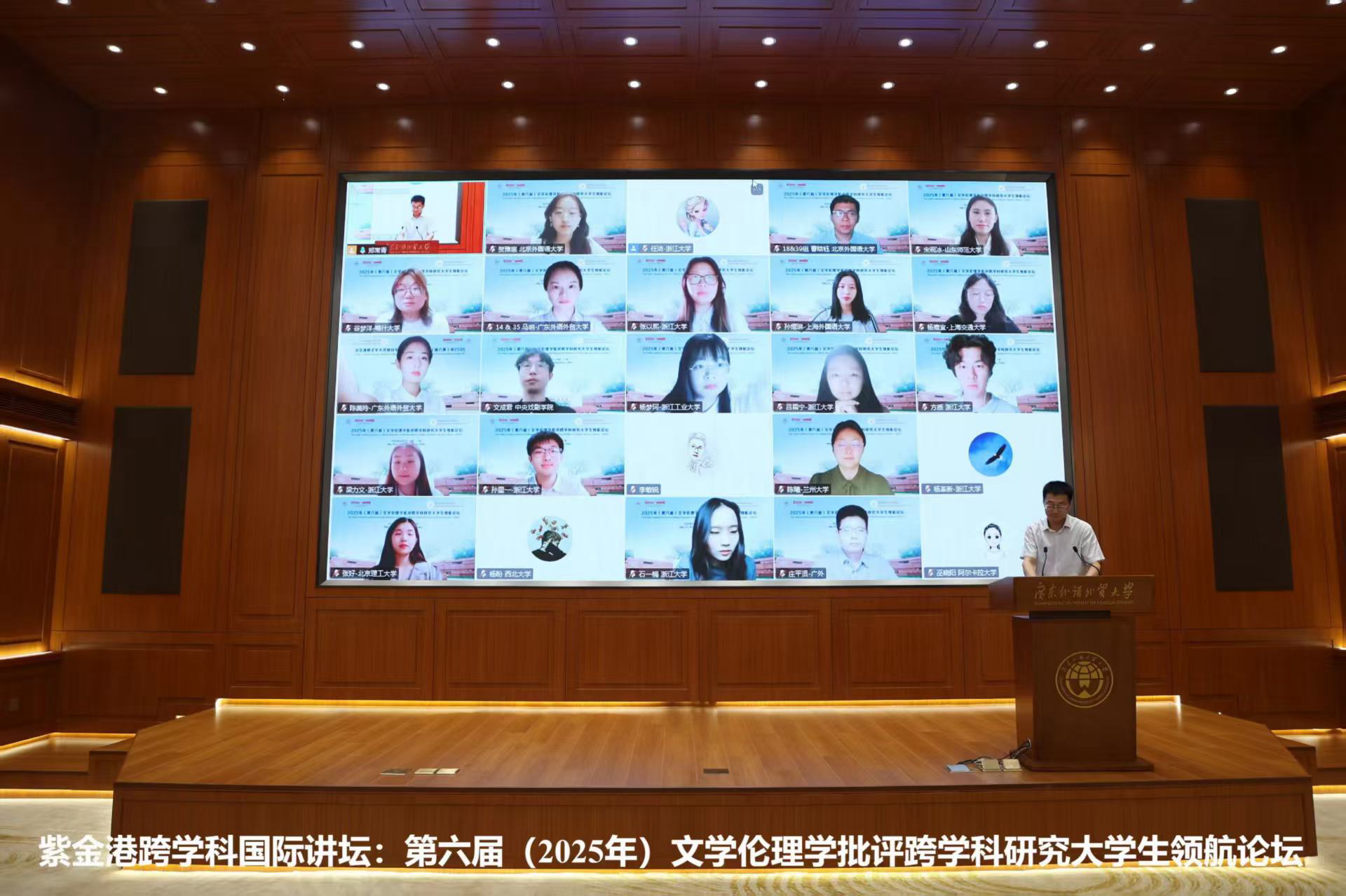 本网讯 2025年5月25日,由广东外语外贸大学英语语言文化学院与浙江大学世界文学跨学科研究中心等多校共同主办的“紫金港跨学科国际讲坛:2025年文学伦理学批评跨学科研究大学生领航论坛”在我校白云山校区国际会议厅以线下与线上相结合的方式成功举办。来自中国、英国、韩国、马来西亚、越南、西班牙等国家147所高校的近600位大学生及特邀专家参与论坛,其中bevictor伟德26名学生参会。本次论坛采取线上与线下相结合的方式,直播参与人数近7000人。