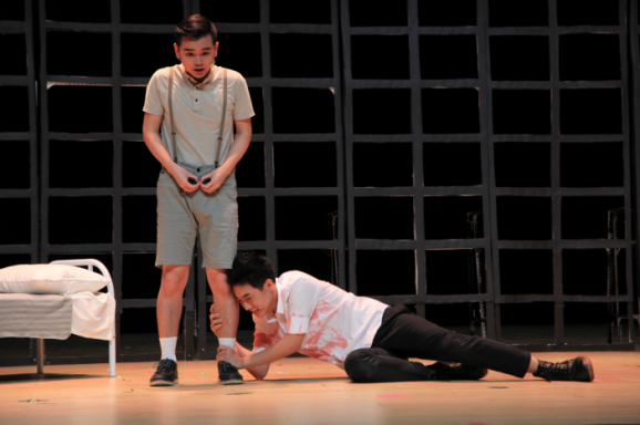 该片以卡图兰的故事贯穿始末,其中,卡图兰与哥哥麦克之间的兄弟之情感人至深,令观众印象深刻。卡图兰的扮演者朱圣雄将卡图兰的善良和坚决演绎的绘声绘色,为观众展现了一个多才却被命运折磨的作家卡图兰。而彭远扮演的哥哥麦克,麦克从小被父母折磨而精神错乱,一心向善却因不谙世事,断送了无辜男孩的性命。彭远演出了麦克身体的愚钝,但更多的他将麦克善良的本性演绎了出来,让观众不由得为麦克凄惨的人生产生共鸣。这部剧中还有几处有趣的的小细节,剧中爸爸打哥哥用的水桶就是警官使用的水桶,全场始终未更换背景板,通过这些东西的共通性来体现暴力的共性,这都是对人权的一种侵犯。以及警局背景墙上的玫瑰花标志和家中的玫瑰花藤,它隐喻的是一个极权国家的思想政治,目的是想让大家知道这种极权统治已经深根于民众的日常生活,从而营造出一种压抑的氛围。