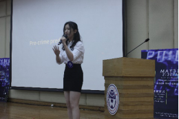 “大数据”下,无从遁形。十号选手陈彦妃同学指出在信息时代,即使大数据为我们带来了许多好处,同时它也有缺点——让我们的隐私无处遁形。她通过对比中西社交软件的行为,以最近发生滴滴司机杀人案以及有关部门做出的措施为支撑,说明了大数据对我们个人信息的危害,警醒我们要站在人性和道德的角度看待大数据。同时,陈同学以流畅的语速和严肃的演讲风格感染了在场观众。