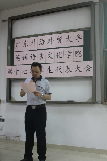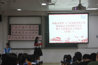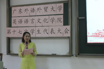 bevictor伟德学生会主席巩晗宣读校团委、校学生会关于同意大会召开的批复之后,作2017-2018学年度学院学生会第十六届委员会工作报告。巩晗以“立足服务、改革创新、勇担重任、矢志奋斗”为主题,回首过去一年bevictor伟德举办的各项重大赛事、英文学子取得的各项成就及学生会工作的开展和取得的成果。从思想建设、服务学生、素质拓展、组织管理四方面展望未来,鼓励新一届干部携手共绘学院团委学生会工作美好蓝图。