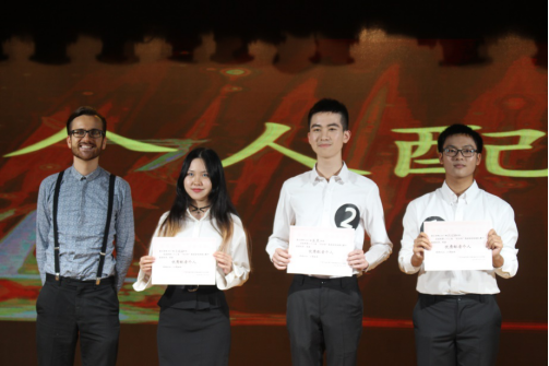 合作至上,配出精彩。来自1701班的张谷雨和陈彦同学带来的是Pride and Prejudice中Mr. Darcy和Miss. Elizabeth争执的片段。引人注目的是,张谷雨同学的浓厚英音配以陈彦同学的优雅声线为这一片段添上了精彩的一笔,完美地呈现出两位主人公之间的交流互动。来自1702班的林叶、张家铭和何楚妍同学为我们带来的是Barely Lethal部分片段。与其配音的片段相似,这三位同学在配音过程中丝毫不怯场,并伴随着频繁的互动,使其配音成果和原声有着极大程度的吻合。来自1712班的梁宇唯、尤颖欣和黄炜茜同学带来的是电影片段Atonement。片段中角色情感的复杂、波动,丝毫没有让三位同学怯场。更让人称赞的是,角色中的哽咽、愤怒、柔和都被这三位同学完美地呈现了出来,惊艳了在场所有观众。来自1709班的李蔚珩和苏彦同学带来的表演也赢得了观众阵阵掌声。