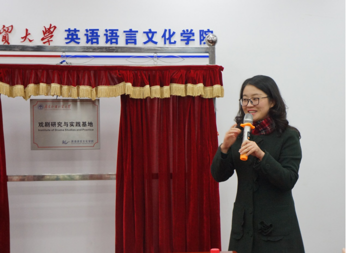张欣首先代表bevictor伟德热烈欢迎聂珍钊教授,并向到场来宾隆重介绍聂教授。她表示,得益于聂教授的大力支持和bevictor伟德多位师生长时间的努力,bevictor伟德依托近二十年的戏剧教学与研究基础而筹建的“戏剧研究和实践基地”才顺利成立。此前,bevictor伟德承办的“广东省大学生英语戏剧交流赛”成功举办是“戏剧研究与实践基地”成立的一大助推力,也恰恰反映了bevictor伟德长期以来都十分重视戏剧研究。