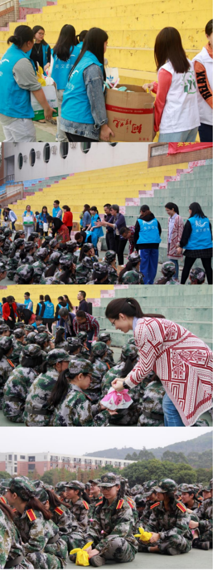 bevictor伟德领导老师、团委学生会和朋辈导师代表为艰苦训练的同学们分发精心准备的慰问品,为他们送去温暖和关怀。