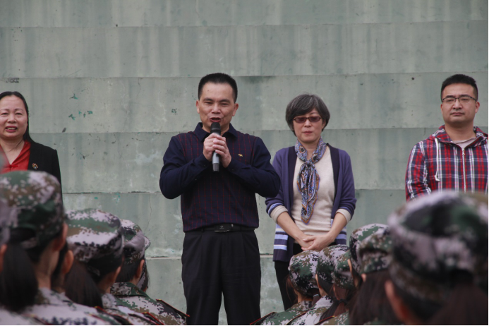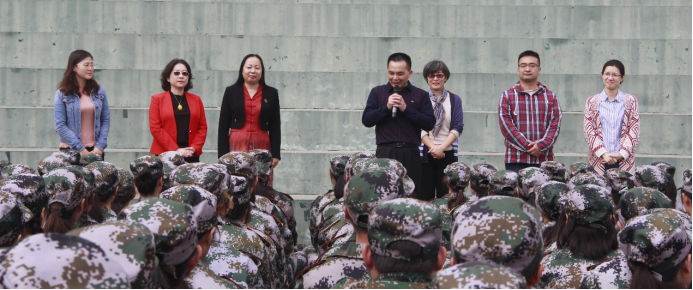 林绍雄书记向正在辛苦训练的教官和新生们表示了亲切的慰问。林绍雄肯定了10天军训以来同学们优异的表现。他鼓励同学们向部队军人学习,培养吃苦耐劳的精神、磨炼坚强意志,并将在军训中培养的优良品质延续到今后的学习工作生活中。他指出,同学们要通过军训培养国防观念、增强国家意识,不畏艰辛,砥砺前行,坚持到军训的最后一刻。最后,他表达了对2019级军训成果汇报演出的期待,希望同学们以最饱满的热情投入其中,向全校师生展示出英文学子的风采。