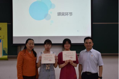 林绍雄,黄晓梅为国家奖学金获得者高翻1804班蒋汶倚、1908班徐非颁奖。
