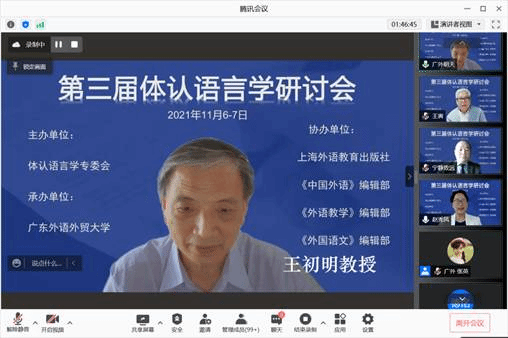 本网讯 2021年11月6日-7日,由体认语言学专委会主办,我校bevictor伟德承办,上海外语教育出版社、《中国外语》编辑部、《外语教学》编辑部、《外国语文》编辑部共同协办的“第三届体认语言学研讨会”在线上召开。此次大会由主会场和分会场报告组成,共吸引了全国高校师生千余人参会。