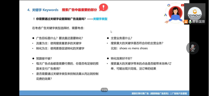 此外,许莹老师从谷歌广告入手,为同学们展开了细致的讲解,同时也为同学们提供了广阔的思考空间,帮助同学们深入了解一些关于谷歌广告的管理经验和运作经验。许莹老师从账户、广告系列等内容和我们详细讲解了关于广告的知识。其中老师讲到的关于搜索广告中“关键词keywords”这一环节给同学们留下了深刻的印象。许莹老师和我们讲述了搜索广告中的“目标,预算,主营业务,转换效果”,以及“广泛匹配Board match keywords”和“完全匹配Exact match keywords”,怎样查看关键词搜索量(Search Volume),包括附件链接(Sitelink Extensions),附加结构化摘要(Structured snippet extensions)等多方面的内容,让同学们对广告有了全面、详细、更为深入的了解,拓展了同学们的知识面,也帮助同学们建立了基本的广告知识和理念。