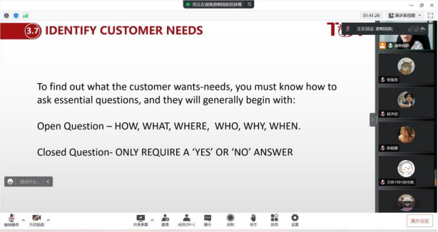 作为唐朝国旅的客服采购部经理,陆燕老师有着多年的海外销售和客服经验。在第一周的培训中,陆燕老师结合自身所学知识以及多年的工作经历,深入浅出地向同学们讲解了采购、客服、销售等方面的相关知识,并通过具体的案例分析,让同学们对所学知识有了更深入的理解。