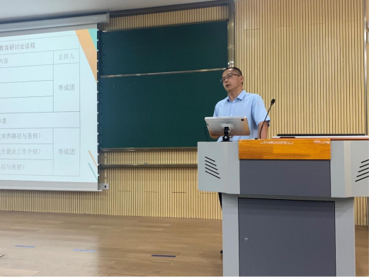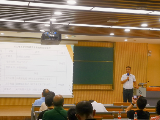 李成团主任对研究生培养路径与方案的基本要求进行了宣讲,他从两方面总结了当前研究生面临的主要问题,一方面,有些学生因抗压能力欠佳导致心理出现问题,另一方面,学术研究中因缺乏创新思维或选题不当导致论文写作无法正常进行下去。他紧接着介绍了研究生培养方案基本要求,包括培养目标、研究方向、学习年限、课程设置及学分、培养计划制定及培养环节性等及相关政策性要求,并呼吁导师们创新研究生培养的路径,落实导读、研讨会等科研交流活动。