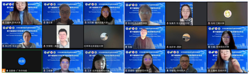 本论坛于5日晚举行,由广东外语外贸大学陈多友教授主持,东北师范大学陈秀武教授评议。本论坛共有14位学者线上参会,议题主要围绕文学伦理学视阈下的日本近现代文学展开。与会学者大都从文学伦理学批评的角度对各自的研究领域发表了深刻的见解,并分享了研究经验。其中,广东外语外贸大学陈多友教授、南京师范大学林敏洁教授、同济大学刘晓芳教授、中国社会科学院邱雅芬教授、吉林大学徐明真教授、广东外语外贸大学杨晓辉教授都从文学伦理学批评的角度对不同的文学作品进行了思考和分享,并把文学伦理学批评与多元化、疾病叙事、生态批评等联系起来,这不仅拓展了文学伦理学批评的跨学科内容,更展现出议题的时代前瞻性和进步性,为跨学科发展指明了方向。北京语言大学周阅教授和广东外语外贸大学张秀强教授则聚焦于中日文学、文化的比较研究,同时也兼顾了文学伦理学批评的视角。京都女子大学刘小俊教授与山东师范大学李光贞教授则关注了了中日文学的互译问题,其中刘小俊就翻译伦理学在日本文学中的汉译研究发表了较为深刻的见解。东北师范大学陈秀武教授、上海外国语大学高洁教授、厦门大学吴光辉教授、南京大学叶琳教授注重文学本身的书写与叙事策略,他们将文学批评融入时代与地域,从而拓展了文学文本的解读途径。评议人陈秀武教授对专题发言作了精彩的点评,他高度赞扬了与会专家的发言议题,并感谢他们对文学伦理学批评的跨学科发展做出的指引和贡献。