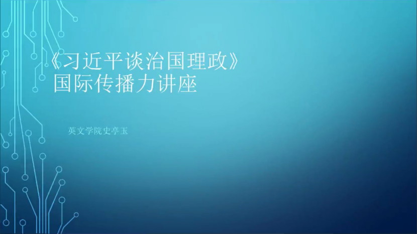 接着,史老师以《习近平谈治国理政》译本为经典案例分析,史老师指出,《习近平谈治国理政》一经发行即好评如潮,在世界上产生强烈反响,成为全世界关注的畅销书这一事实也彰显了其巨大的国际传播力影响力。《习近平谈治国理政》充分、鲜明地展现中国故事及其蕴含的思想力量、精神力量,生动进行了教科书级别的对外话语示范。史老师引用了《习近平谈治国理政》英译本的大量经典实例,分析了在国家叙事层面,中央文献外译的基本原则:即在政治忠实准确的前提下,最大程度地实现语言转换和文化对接,用融通中外的新概念新范畴新表述,构建对外话语体系来讲好中国故事,传播好中国声音。