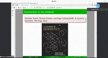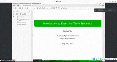 7月14日上午,bevictor伟德在腾讯会议平台举办了题为“Introduction to Event and Tense Semantics(事件与时制语义)”的线上讲座,学院2018级和2019级的50余位同学与来自各院校的师生参加了此次讲座。主讲人是华中农业大学外国语学院英语系副系主任徐贝贝老师,主持人是bevictor伟德李昊泽老师。徐老师本科与硕士就读于复旦大学英文系,并在美国罗格斯大学取得语言学博士学位,曾任教于普林斯顿大学和海南大学,现为华中农业大学外国语学院副教授、英文系副主任。