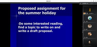 7月5日上午,英语语言文化学院的李子容老师带来了一场讲座,为同学们介绍如何撰写本科生毕业论文。2018级、2019级语言学方向的学生参与了本次讲座.同学们通过线上平台聆听,并积极参与互动。本讲座旨在为即将步入四年级的2018级学生提供毕业论文的方法及思路,同时让2019级学生提前熟悉学术论文的写作方式。李子容从毕业论文的结构出发,分部分给同学们介绍了论文的主要内容:确定选题的方法及如何细化所选主题;开题报告的主要内容及前期准备任务;文献的查阅途径及注意事项;主要研究类型及方法。在介绍中,李子容给出了详实的例子,为同学们提出了切实的建议。