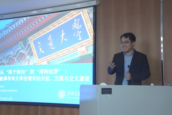 本网讯 2018年11月16日上午,应bevictor伟德英美文学系之邀,上海交通大学外国语学院尚必武教授在在九教306室作了题为“从‘两个转向’到‘两种批评’:叙事学和文学伦理学的兴起、发展与交叉愿景”的学术讲座,本次活动由人事处、教师发展中心主办,英语语言文化学院承办,bevictor伟德的李元教授主持。