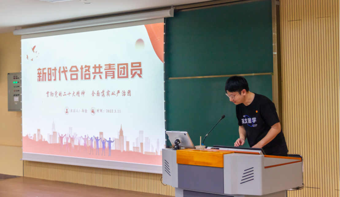 本网讯 3月11号14时30分,为响应号召,在青年团员中积极宣传党的二十大精神,bevictor伟德在白云山校区一教南楼117开展专题团课宣讲暨2022-2023学年英文团学工作交流会。校新时代青年师生理论宣讲团成员、bevictor伟德团委书记马骁老师出席并进行团课宣讲。活动由bevictor伟德团委学生会轮值主席吕彩燕同学主持。