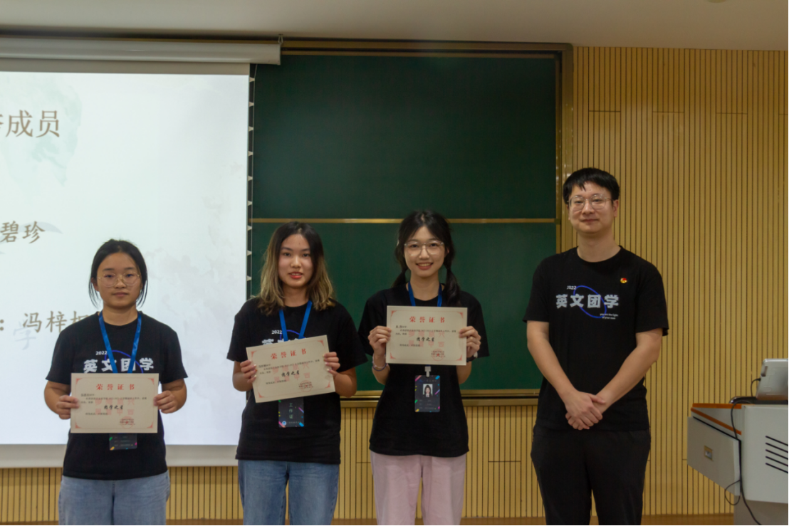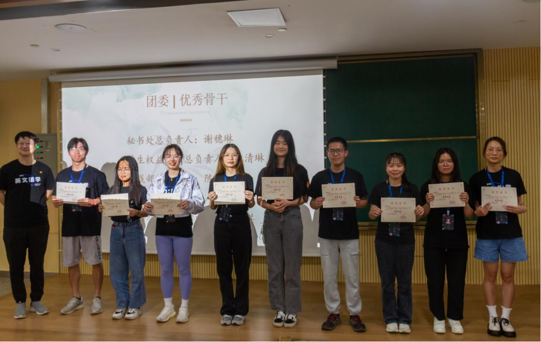 英文团委书记马骁为获得团学之星和优秀骨干的同学颁奖
