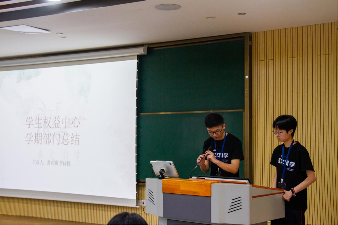 各部门团员骨干就上学期工作进行总结分享。大家围绕如何提升服务同学水平、提高工作效率和团队合作协调力和提高工作细节敏感度等方面分别进行了分享和总结。交流环节增进了团员骨干们的相互理解和协同意识。