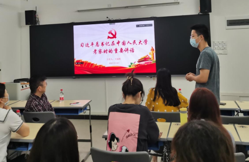 文学和文化方向学生第四党支部书记韩丹老师主持会议并总结。她表示,王蕴峰老师深入传达了习近平总书记在中国人民大学考察时的重要讲话精神,从师者的角度分享学习心得结合实际,让人印象深刻,为支部学生党员进一步学习贯彻习近平总书记重要讲话精神,牢记践行习近平总书记对青年学生的殷殷嘱托指明了方向。同时她也希望支部同志做到学思结合,争做堪当民族复兴重任的时代新人。