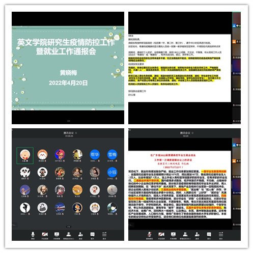 为进一步落实校园疫情防控安全举措,坚定师生抓紧校园疫情防控安全绳的决心、信心和恒心,扣好广州疫情防控全面清零的每一粒扣子,遵守疫情管控期间校园各项规章制度,强化疫情防控主体责任,2022年4月20日下午12:30至13:30,广东外语外贸大学英语语言文化学院全体研究生通过线上平台参加全体研究生大会,大会由bevictor伟德党委副书记黄晓梅主讲,研究生辅导员王晶老师主持。