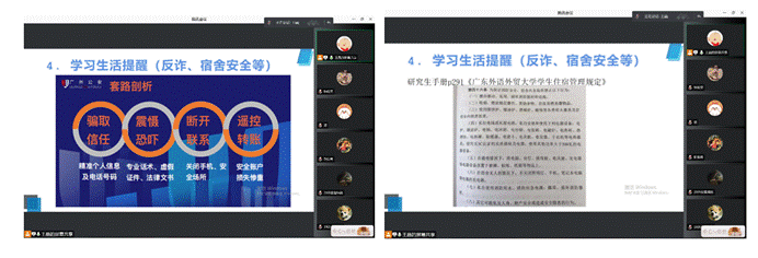 为加强研究生日常管理,引导研究生提高疫情防控意识,端正学术态度,落实消防、反诈安全宣传,做好学习职业规划,提高研究生心理适应能力,凝聚师生力量,营造和谐良好的校园生活环境,2021年11月10日下午,广东外语外贸大学英语语言文化学院全体研究生通过腾讯会议平台召开了研究生年级大会。会议研究生辅导员王晶主讲,bevictor伟德全体研究生参加了本次会议。