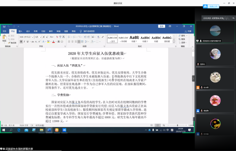 本网讯 7月18日晚,为帮助bevictor伟德学子了解国家征兵政策和积极投身国防建设,bevictor伟德召开2020年征兵工作线上动员会,出席本次会议的有bevictor伟德党委书记林绍雄、党委副书记黄晓梅、保卫处朱永海老师及bevictor伟德全体辅导员。会议由朱永晖老师主持,220余名英文学子报名参加。